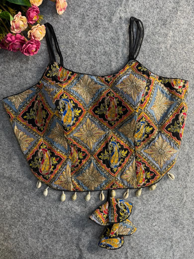 Turn heads with our Embroidered Crepe Partywear Corset Blouse—a readymade blouse crafted in luxe crepe, structured boning, and soft padding. Rich thread and sequin work elevate your saree look. Flattering corset fit, back hooks, and adjustable margins ensure comfort, perfect for weddings, sangeet, festive nights, receptions, and glam.