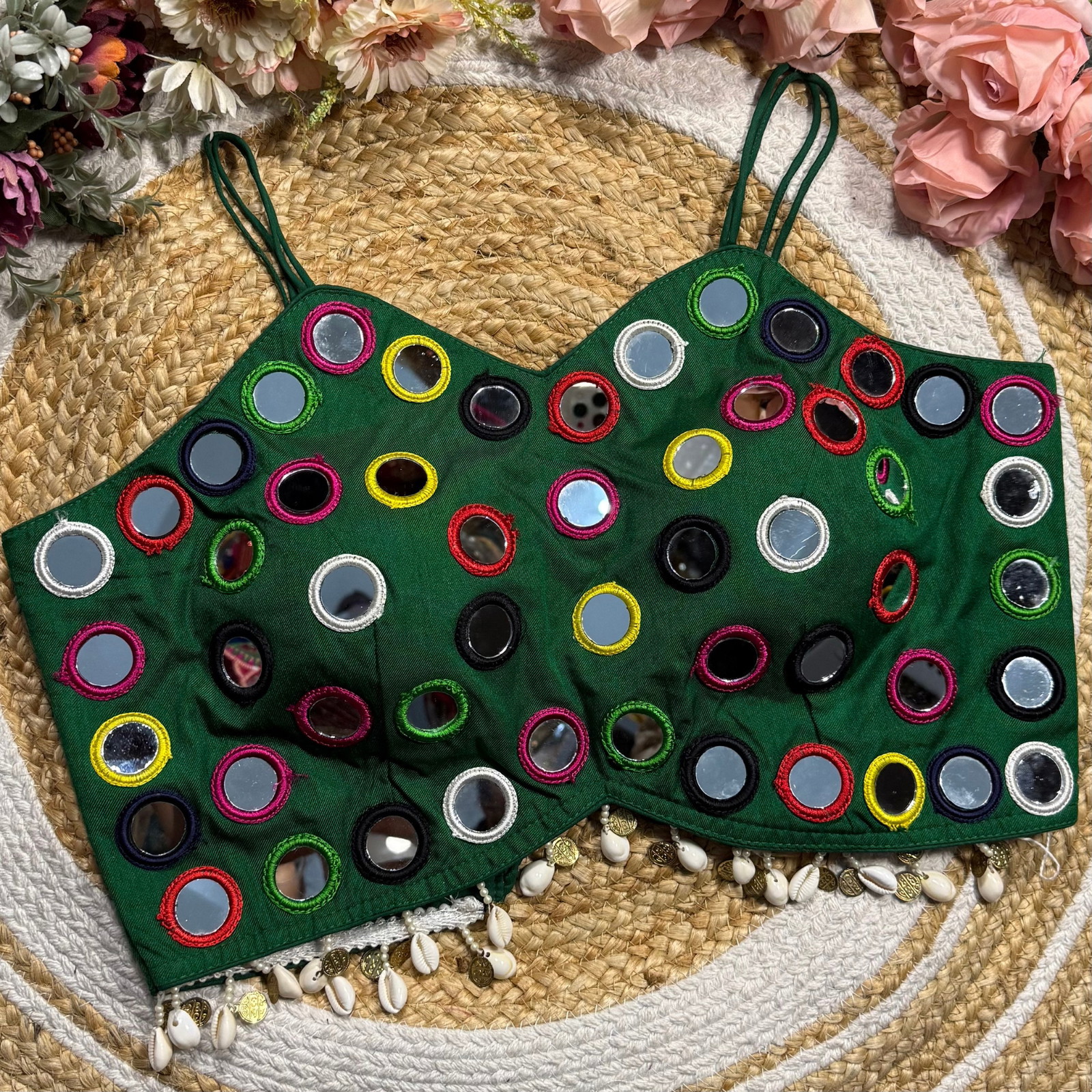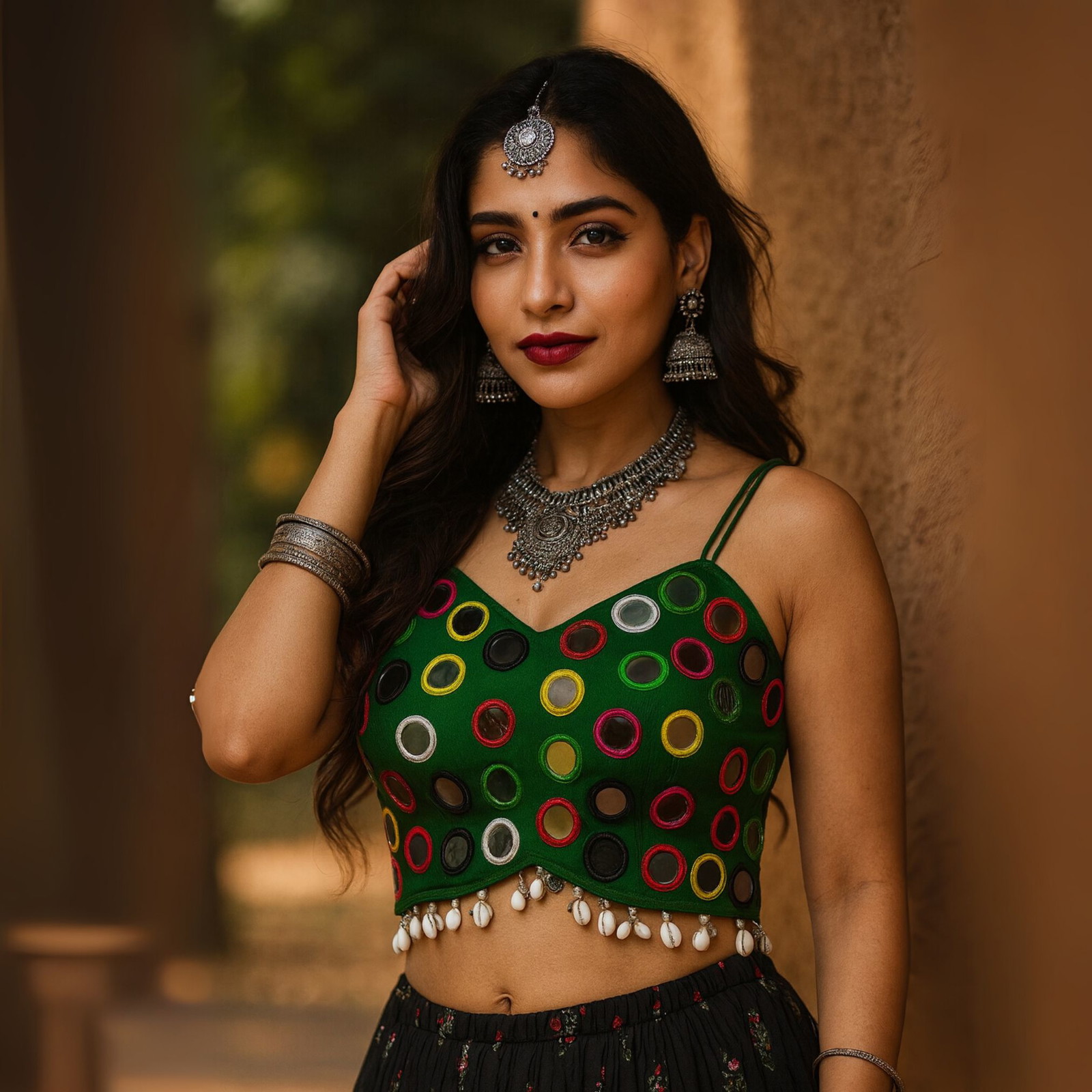 Celebrate this Navratri with our stunning readymade blouse designed to complement every festive outfit. Crafted from premium silk fabric, this Navratri choli features intricate mirror work for a dazzling look. The stylish dori sleeves add a traditional yet trendy charm, making it perfect for garba nights and festive celebrations.