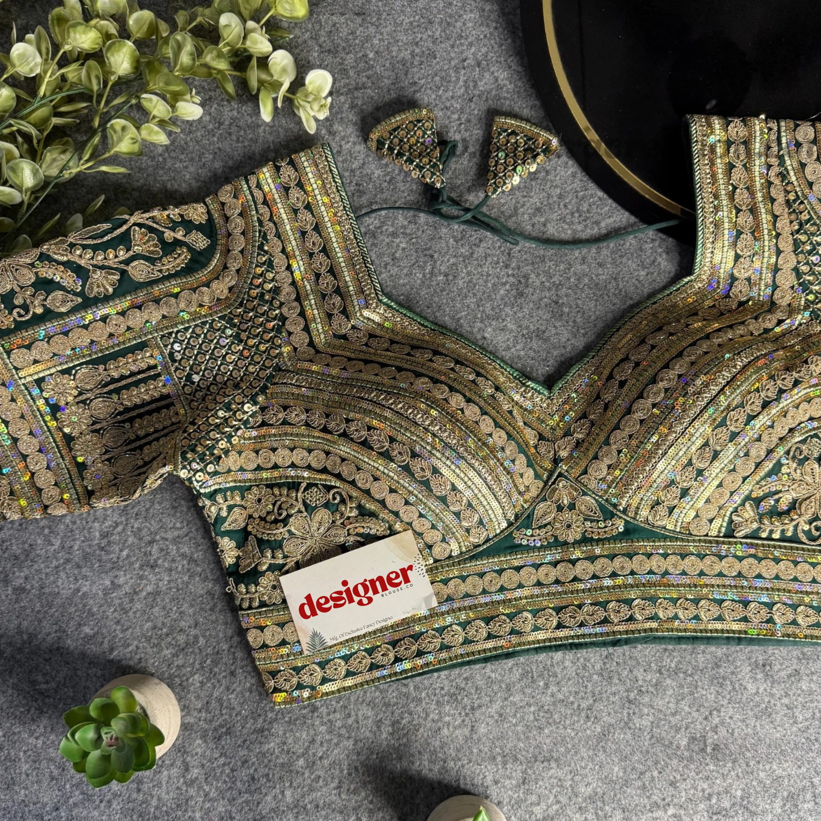 Green Bridal Italian Silk Embroidered Designer Readymade Blouse