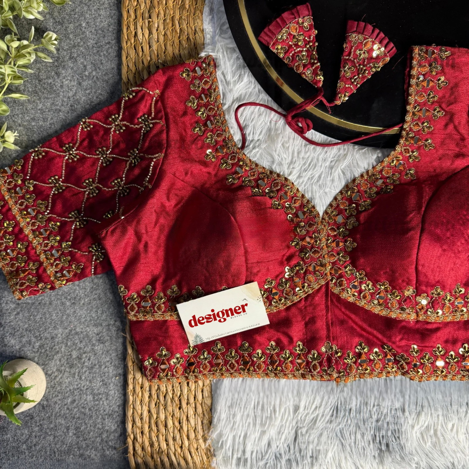 Elevate your bridal look with this Italian Silk heavy embroidery and beads work wedding blouse. Featuring a rich designer finish, padded comfort and elegant sleeves, it pairs beautifully with any saree or lehenga for weddings, receptions and grand functions, giving you a royal, timeless and luxurious appearance all day long.