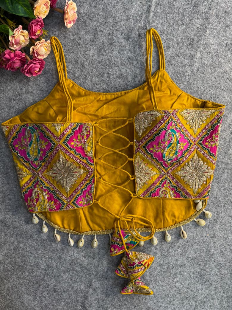 Turn heads with our Embroidered Crepe Partywear Corset Blouse—a readymade blouse crafted in luxe crepe, structured boning, and soft padding. Rich thread and sequin work elevate your saree look. Flattering corset fit, back hooks, and adjustable margins ensure comfort, perfect for weddings, sangeet, festive nights, receptions, and glam.
