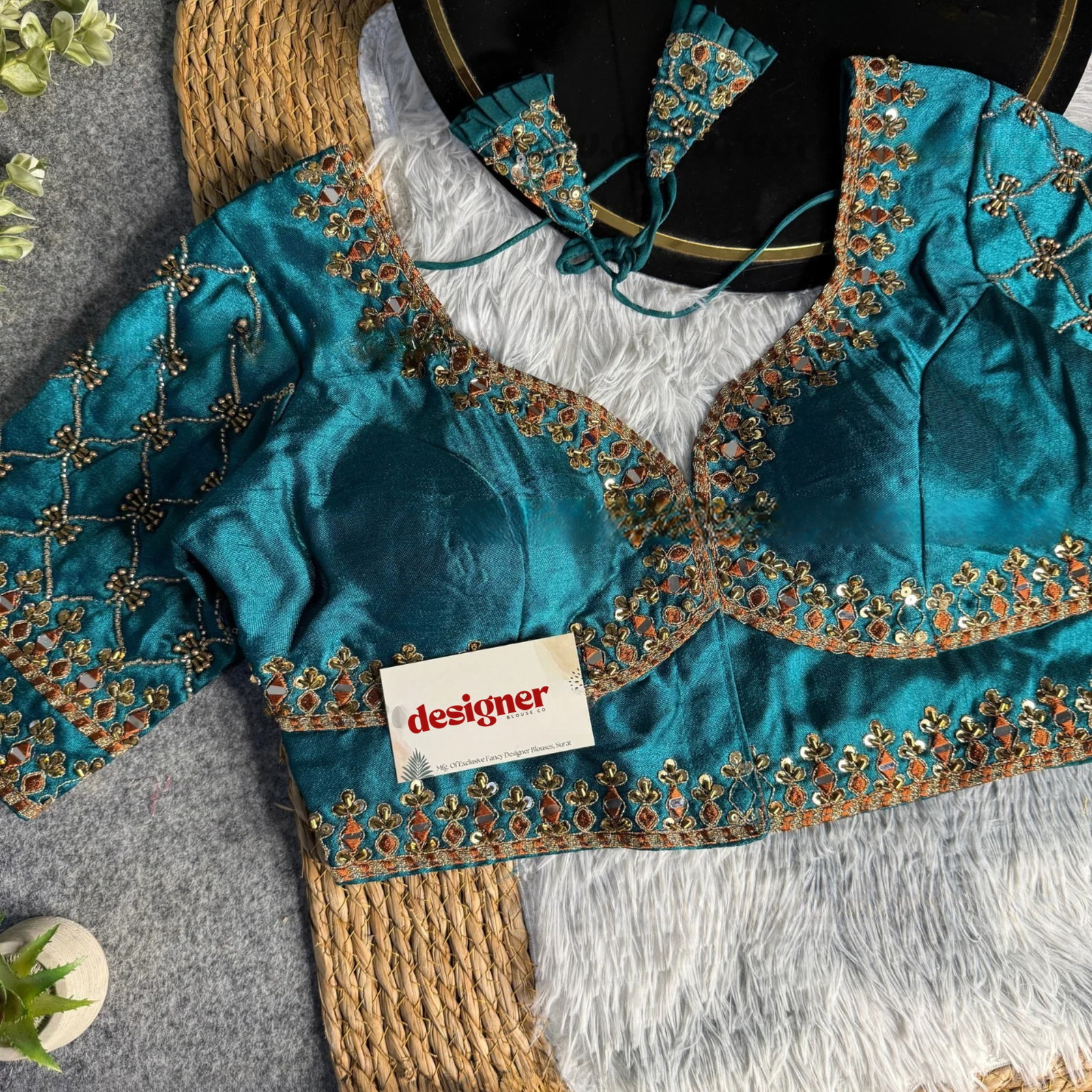 Elevate your bridal look with this Italian Silk heavy embroidery and beads work wedding blouse. Featuring a rich designer finish, padded comfort and elegant sleeves, it pairs beautifully with any saree or lehenga for weddings, receptions and grand functions, giving you a royal, timeless and luxurious appearance all day long.