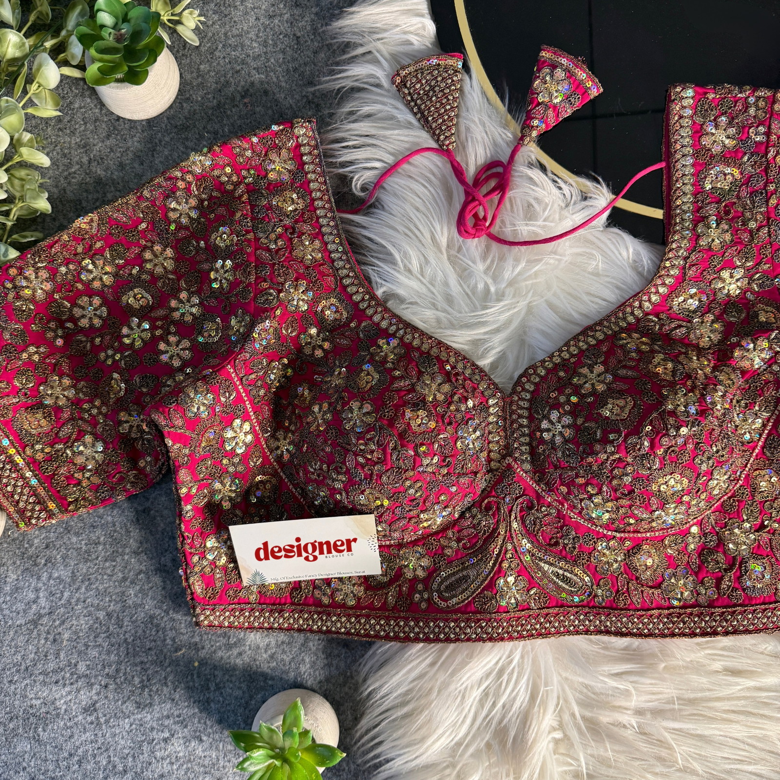 Italian Silk Heavy Coding & Sequence Work Sabyasachi Neck Designer Blouse, crafted in heavy Italian fabric with rich coding and shimmering sequin handwork. half-sleeve, padded, back open with hooks and pure cotton lining for comfort.