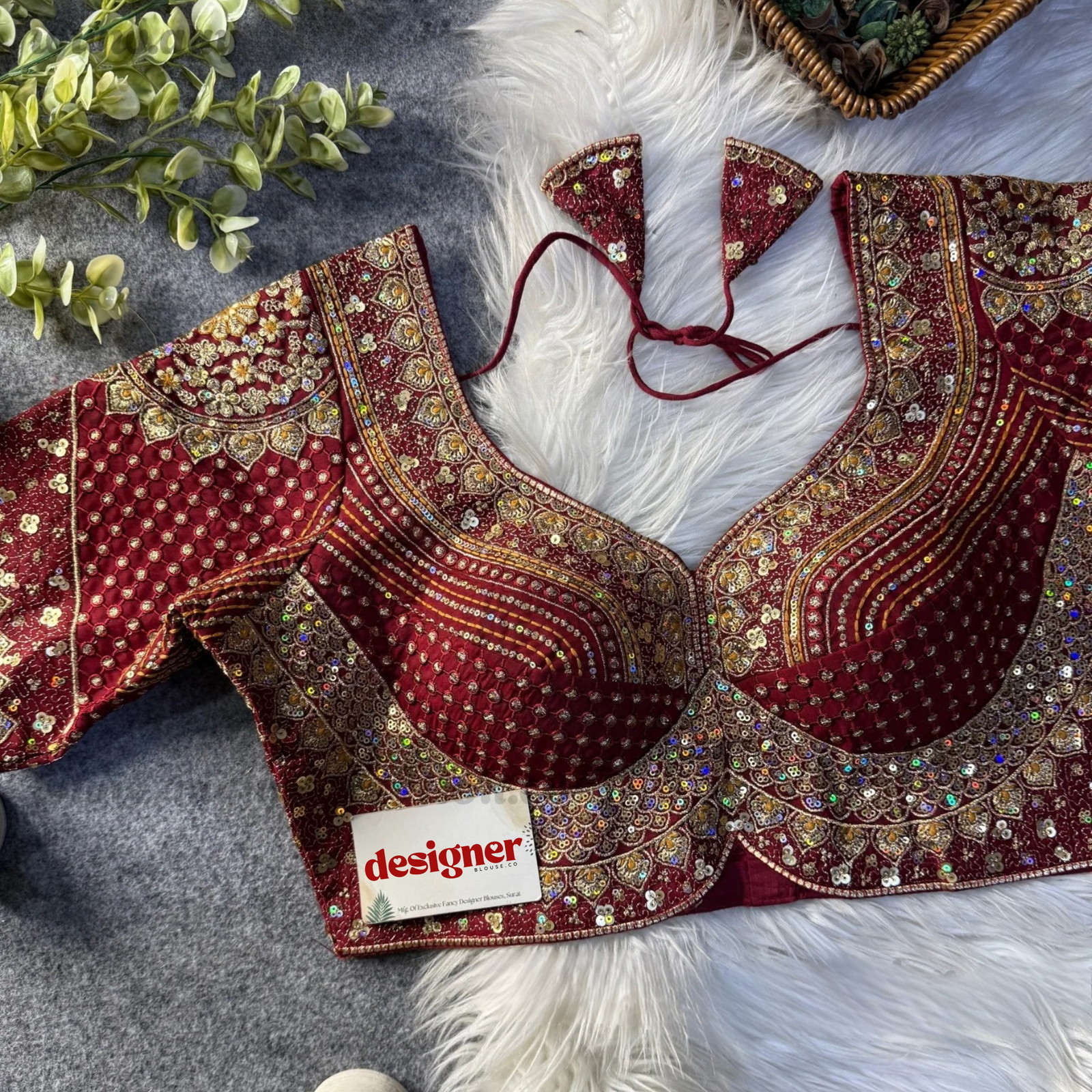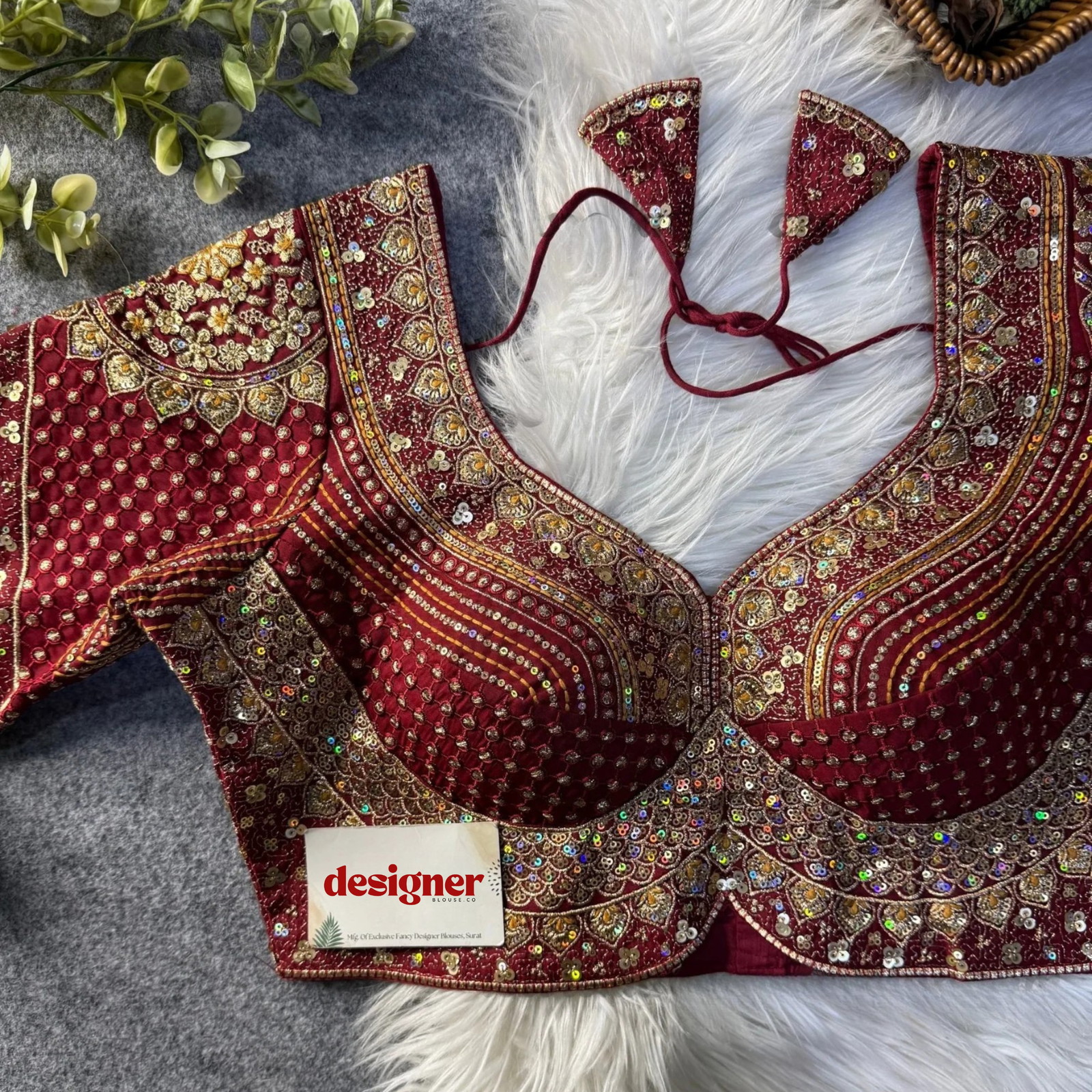 Elevate your bridal look with this Sabyasachi inspired blouse design in heavy georgette. Rich codding and shimmering sequins highlight the iconic Sabyasachi blouse design, paired with breathable cotton lining and built-in pads. this readymade blouse alterable 34–42 sizes—perfect for weddings, sangeet, and grand festive events.
