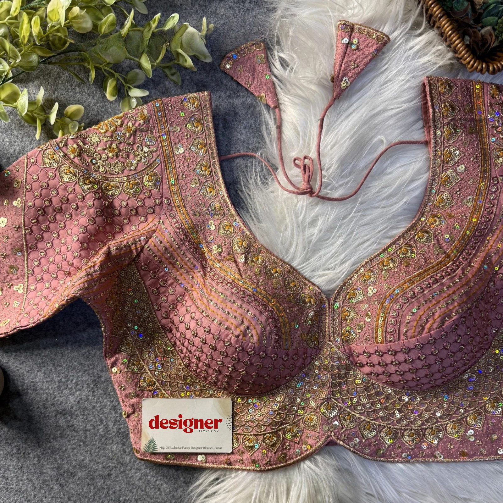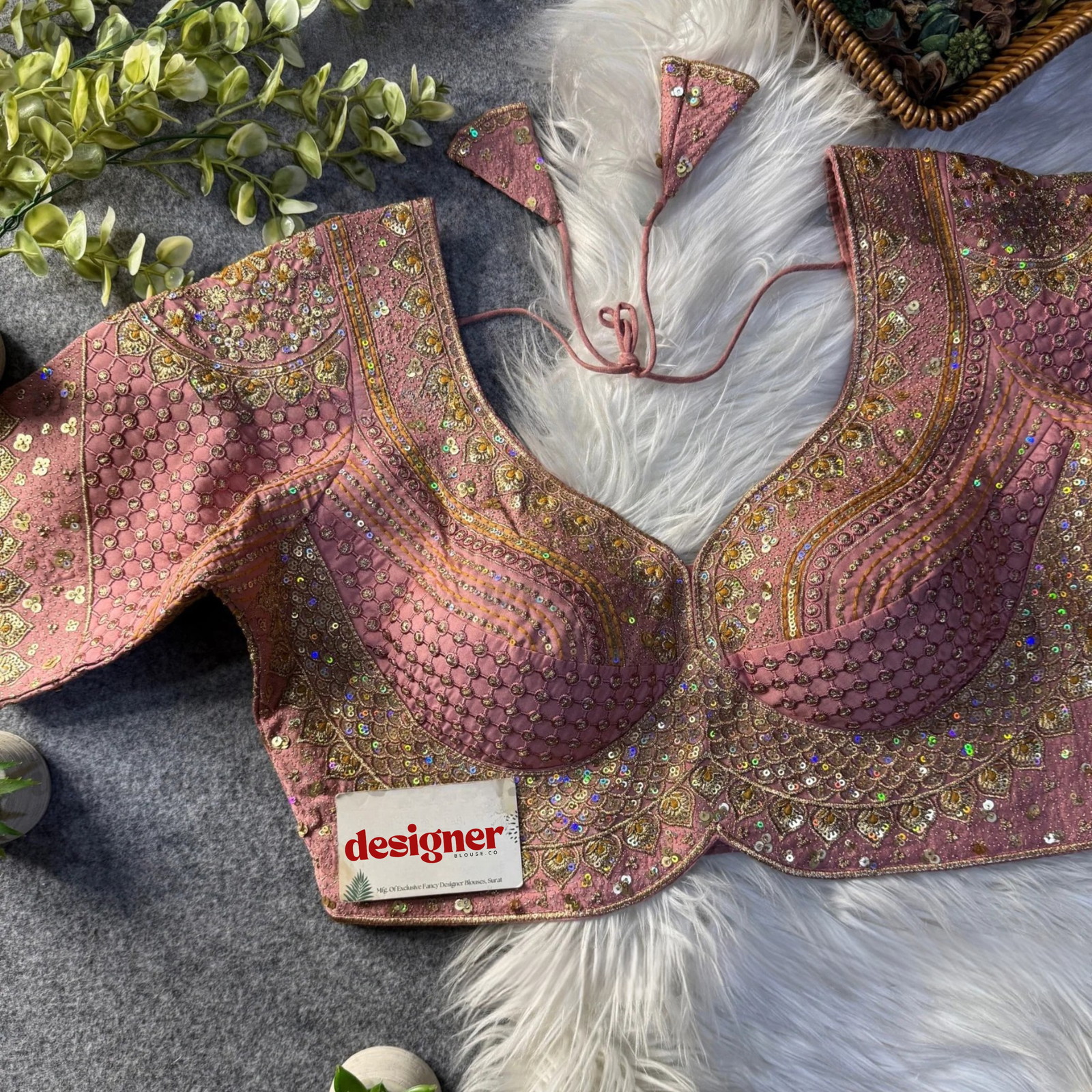 Elevate your bridal look with this Sabyasachi inspired blouse design in heavy georgette. Rich codding and shimmering sequins highlight the iconic Sabyasachi blouse design, paired with breathable cotton lining and built-in pads. this readymade blouse alterable 34–42 sizes—perfect for weddings, sangeet, and grand festive events.