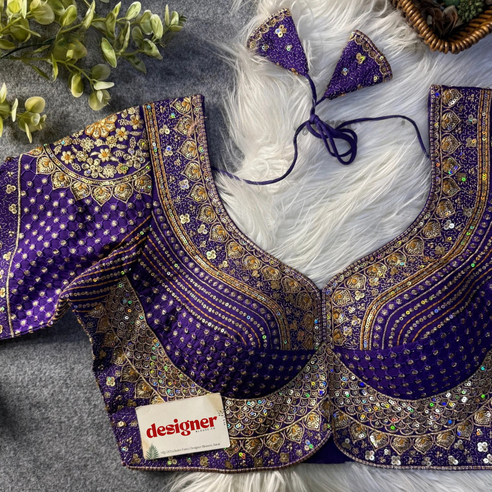 Elevate your bridal look with this Sabyasachi inspired blouse design in heavy georgette. Rich codding and shimmering sequins highlight the iconic Sabyasachi blouse design, paired with breathable cotton lining and built-in pads. this readymade blouse alterable 34–42 sizes—perfect for weddings, sangeet, and grand festive events.