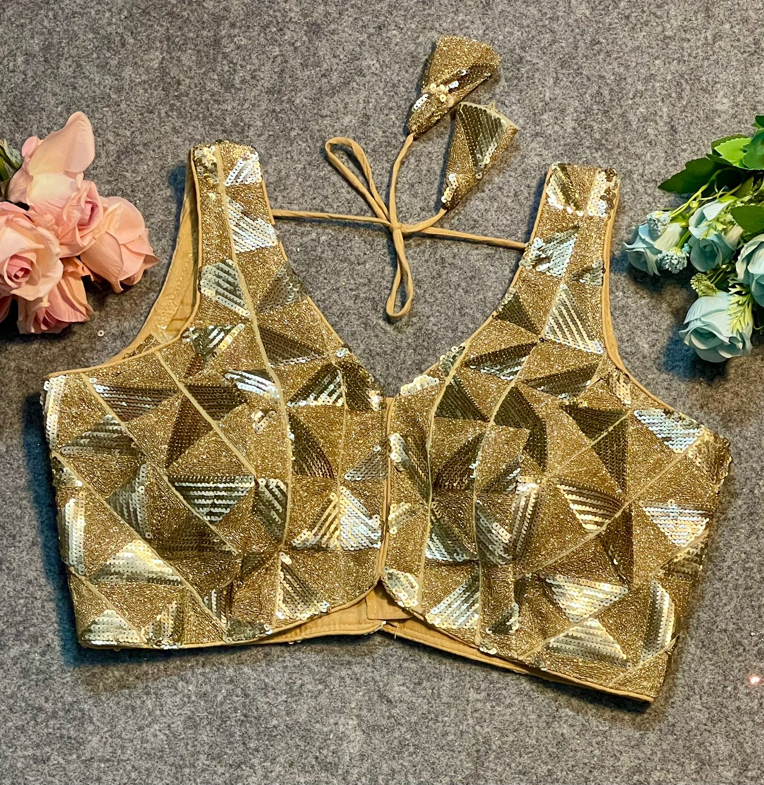 Turn heads with this stunning black sequin work readymade blouse, crafted for a bold and glamorous look. Its intricate geometric sequin pattern creates a dazzling finish, making it perfect for partywear and cocktail functions. Elevate your ethnic wardrobe with this black readymade blouse that offers style, sparkle, and supreme elegance.