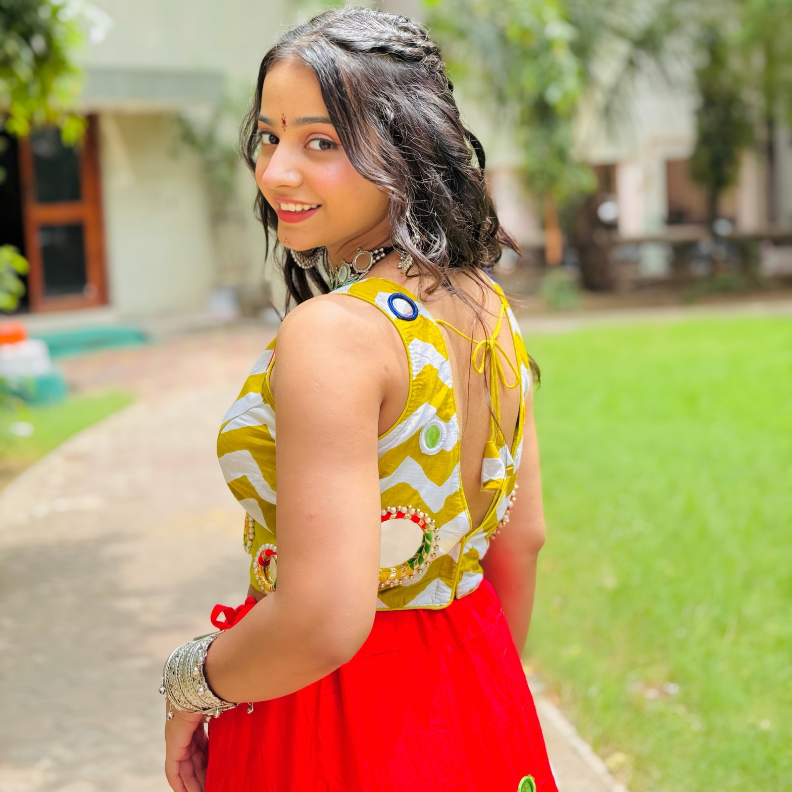 Turn heads this festive season with our Stylish Red and parrot green Color Chaniya Choli with Mirror Work. Featuring intricate mirror embellishments and vibrant red hues, this set is perfect for Navratri, Garba, and special occasions. Designed for comfort and elegance, this readymade chaniya choli offers a flawless fit and a timeless festive look.
