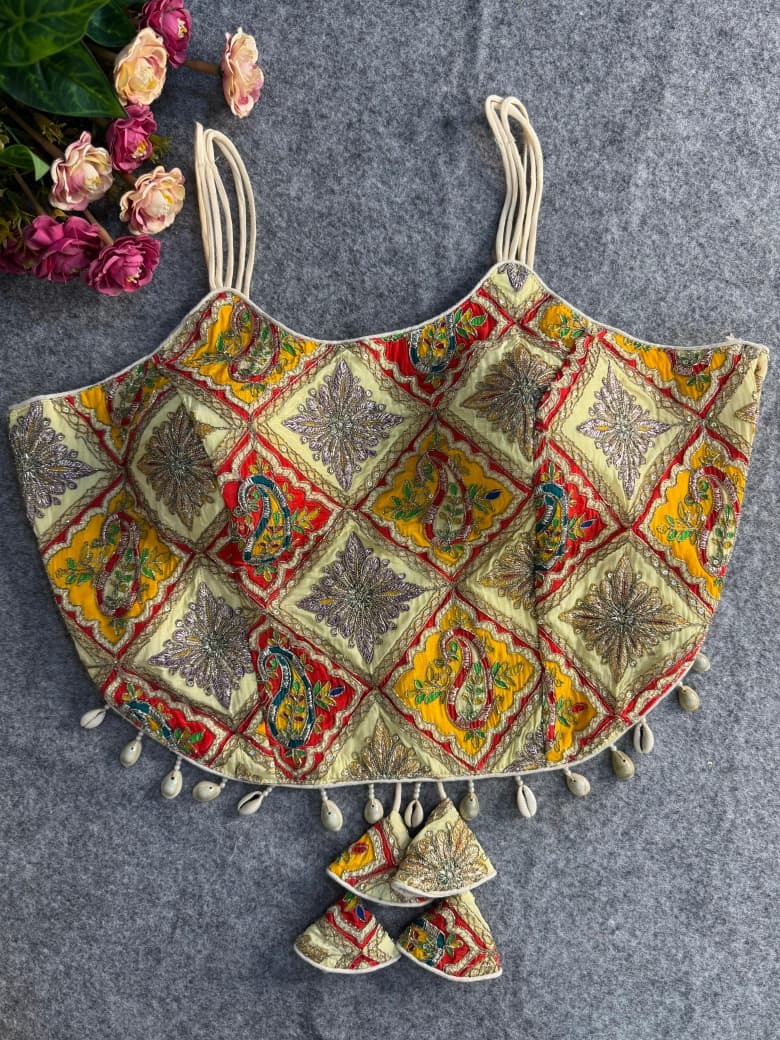 Turn heads with our Embroidered Crepe Partywear Corset Blouse—a readymade blouse crafted in luxe crepe, structured boning, and soft padding. Rich thread and sequin work elevate your saree look. Flattering corset fit, back hooks, and adjustable margins ensure comfort, perfect for weddings, sangeet, festive nights, receptions, and glam.